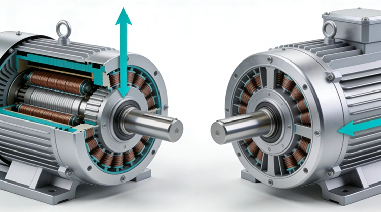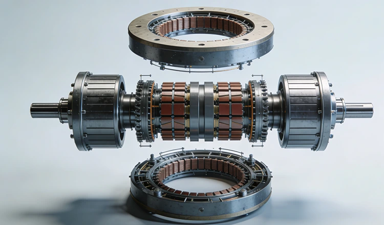 Axial Fluks / Motor Cakera: Menyesuaikan diri dengan struktur dwi kuk belakang untuk litar magnet paksi, menampilkan reka bentuk rata untuk modul pemacu kaki dan pinggang dalam robot humanoid.
